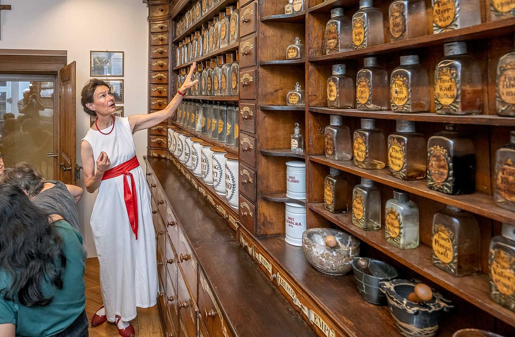 Bei den Theaterführungen erscheint Marie-Christine Egger authentisch und dem jeweiligen Zeitalter entsprechend – eine Augenweide.